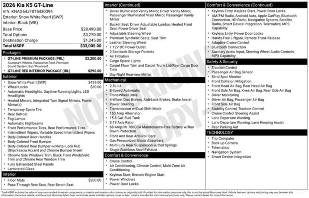 Elevate your commute, weekend adventures, and everything in between with the 2026 Kia K5 GT-Line. This exceptional sedan seamlessly blends style, performance, and technology, making it the ultimate choice for the discerning driver. Experience the difference for yourself and schedule a test drive today.
